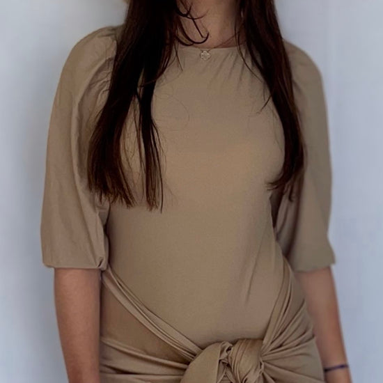 Introducing the Sand Pareo Set, a perfect blend of elegance, comfort, and modesty. This stunning one-piece swimsuit is crafted in a soft, neutral beige, offering a flattering hipster bottom paired with puff 3/4 sleeves that gracefully cover the elbows. A discreet back zipper ensures easy on and off, while the chic design emphasizes a timeless, sophisticated silhouette.